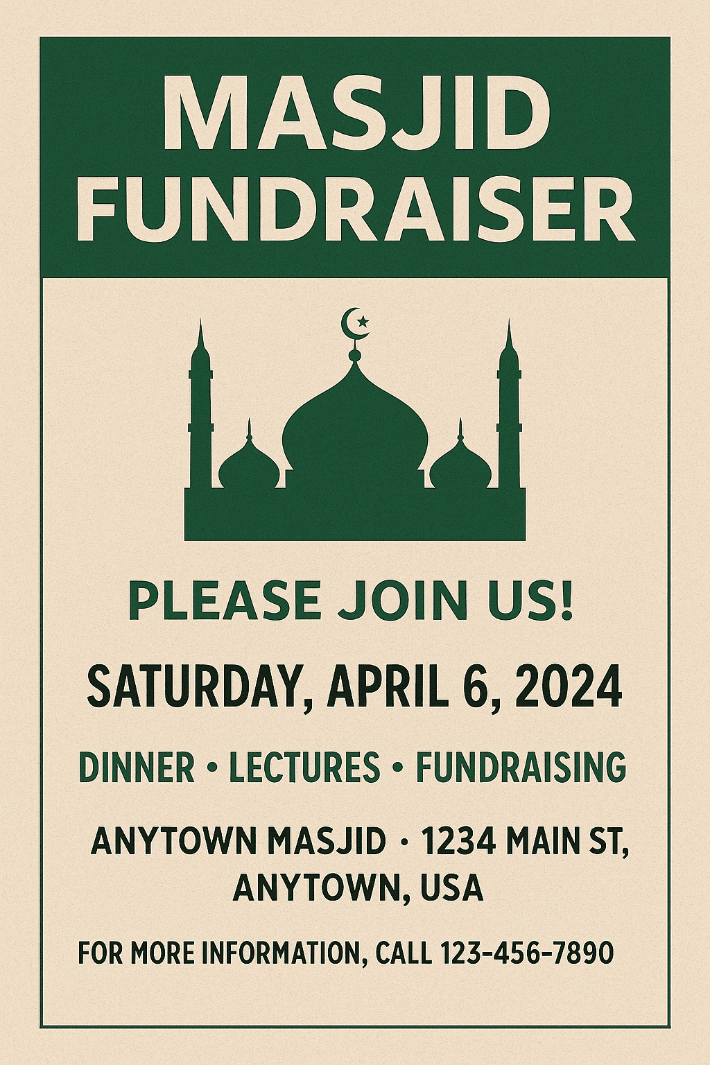Your generous donations help us maintain the masjid, organize Islamic programs, support educational activities, and serve the needs of our growing Muslim community. Every dollar you contribute brings us closer to building a stronger future rooted in faith and unity.